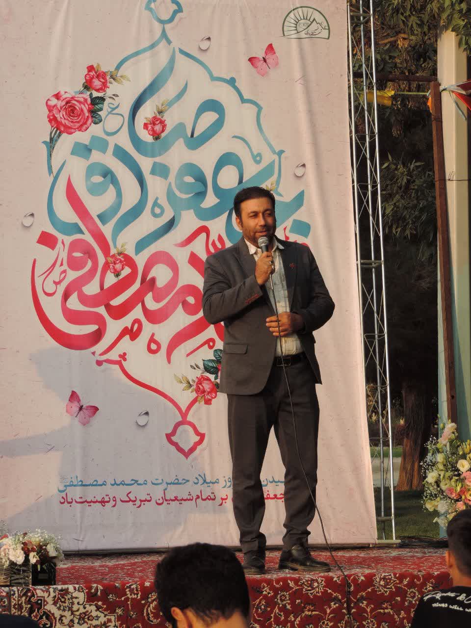 به گزارش پایگاه خبری تحلیلی «امروز خمین» عصر امروز مراسم باشکوه جشن میلاد پیامبر گرامی اسلام، حضرت محمد مصطفی(ص) و ششمین اختر تابناک امامت و ولایت، حضرت امام جعفر صادق(ع) در پارک بعثت شهر خمین برگزار شد.