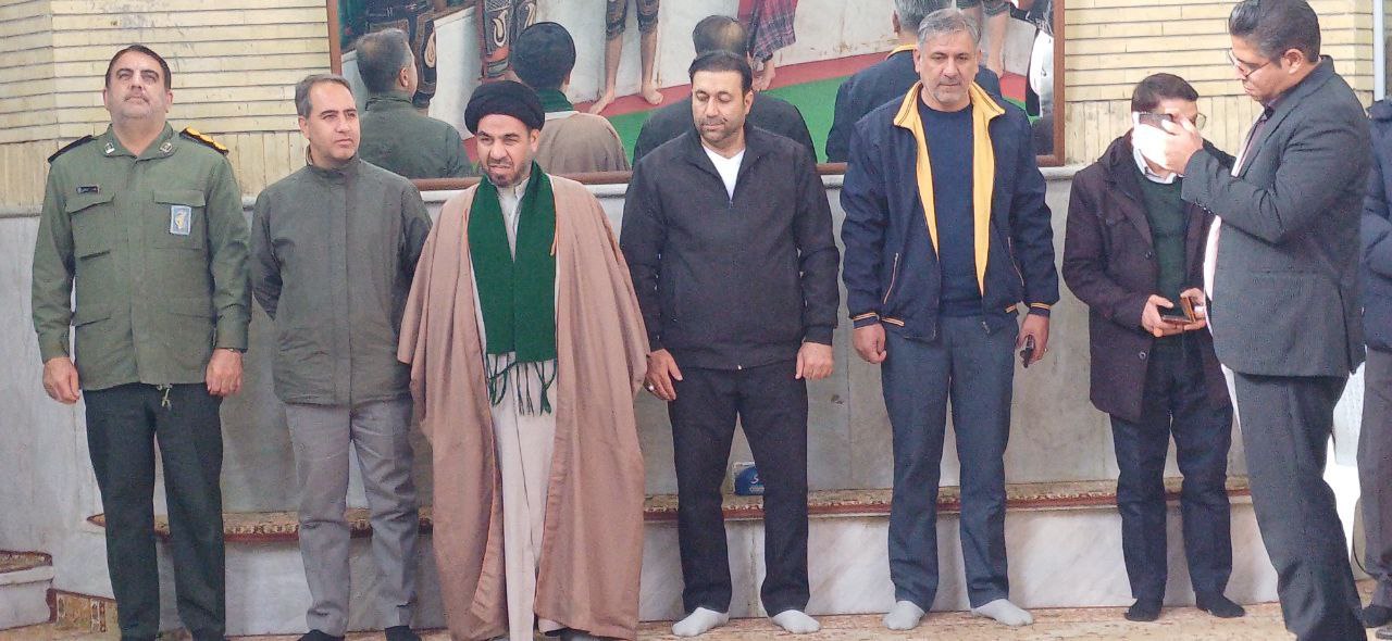 این مراسم با حضور مسئولان، پیشکسوتان و علاقهمندان به ورزش پهلوانی و زورخانهای همراه بود. حجتالاسلام والمسلمین حاج آقا میرصادقی، امام جمعه محترم شهرستان، در جمع ورزشکاران، پیشکسوتان و مسئولان حاضر شدند و بر اهمیت ترویج فرهنگ پهلوانی و ارزشهای ایثار و مقاومت تأکید کردند.