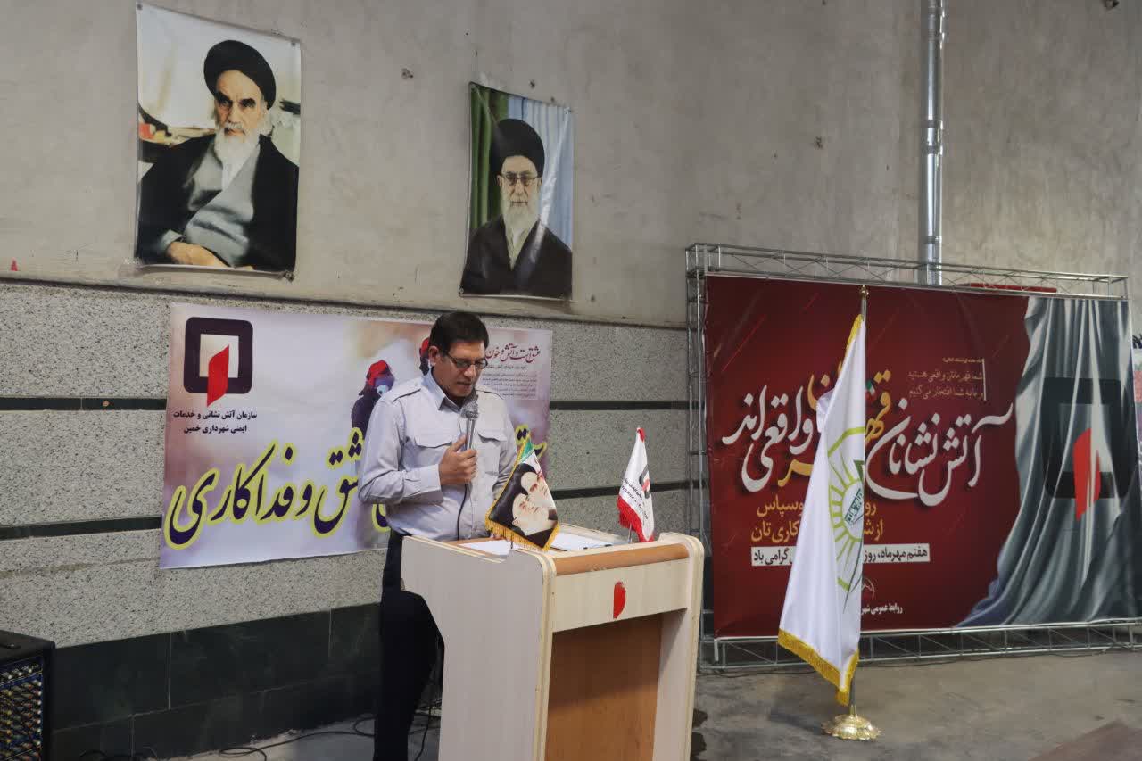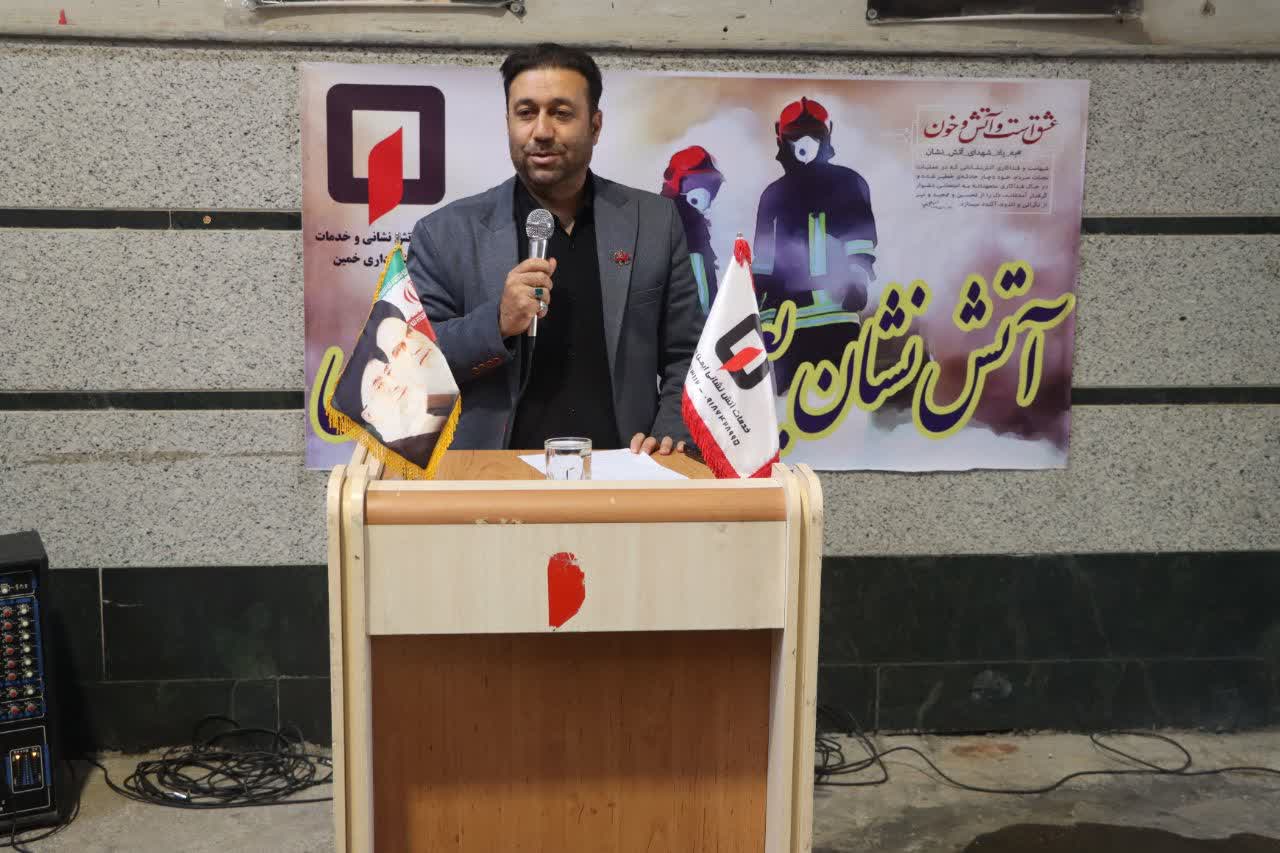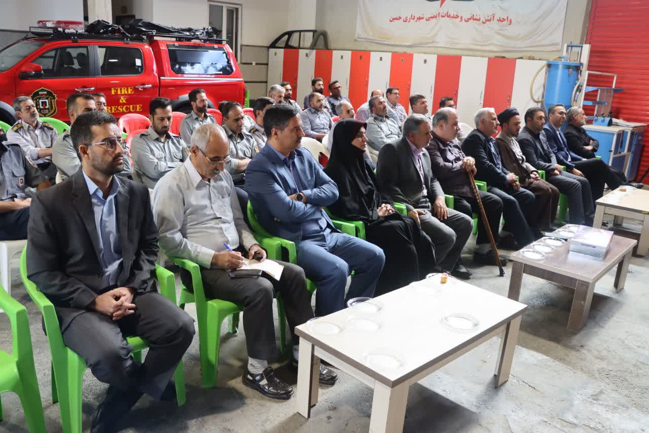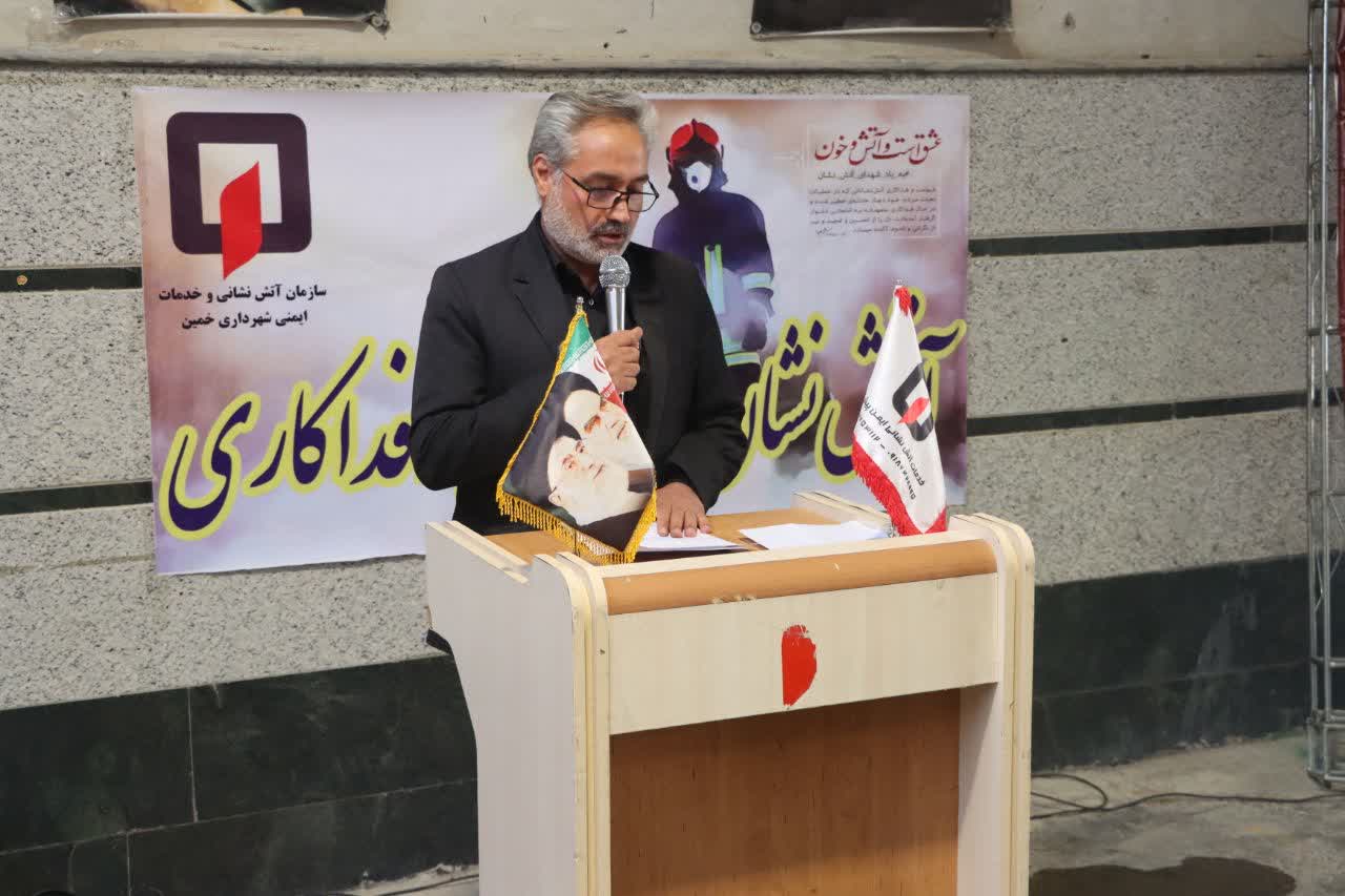 در ادامه، طی مراسمی جداگانه در ایستگاه شماره یک آتشنشانی خمین، از زحمات و فداکاریهای پرسنل سازمان آتشنشانی شهرداری خمین و همچنین آتشنشانان شهرداری قورچیباشی، روستای فرنق، شهابیه و شهرک صنعتی با اهدای لوح سپاس و شاخهگل تقدیر به عمل آمد. این مراسم با هدف پاسداشت خدمات و ایمنیافزانی آتشنشانان برگزار شد.