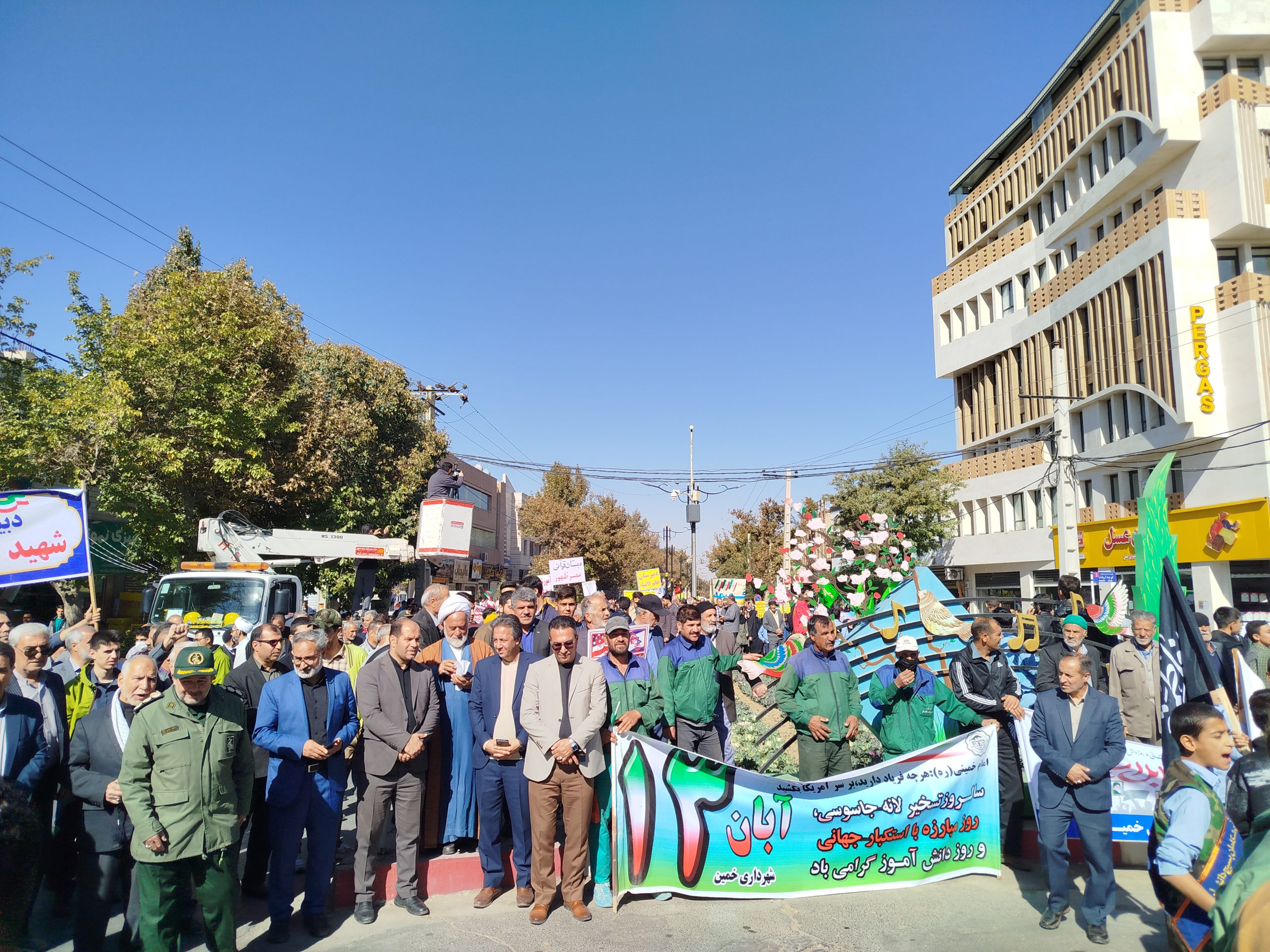 مراسم راهپیمایی روز ۱۳ آبان، همزمان با سراسر کشور، با حضور گسترده اقشار مختلف مردم و مسئولان شهرستان خمین صبح امروز از میدان ۱۵ خرداد تا میدان مدرس برگزار شد.