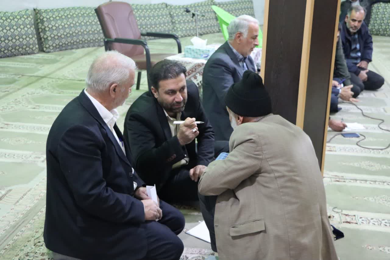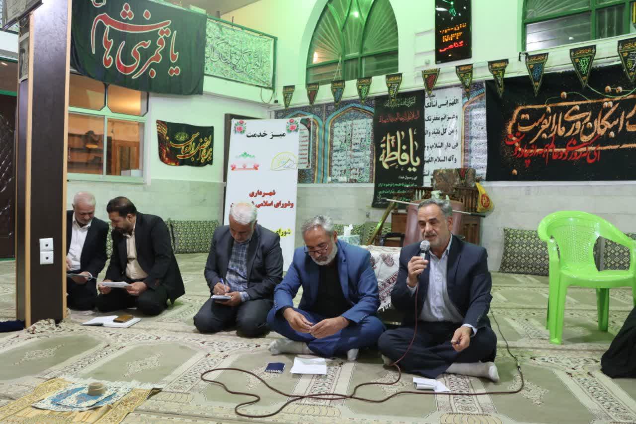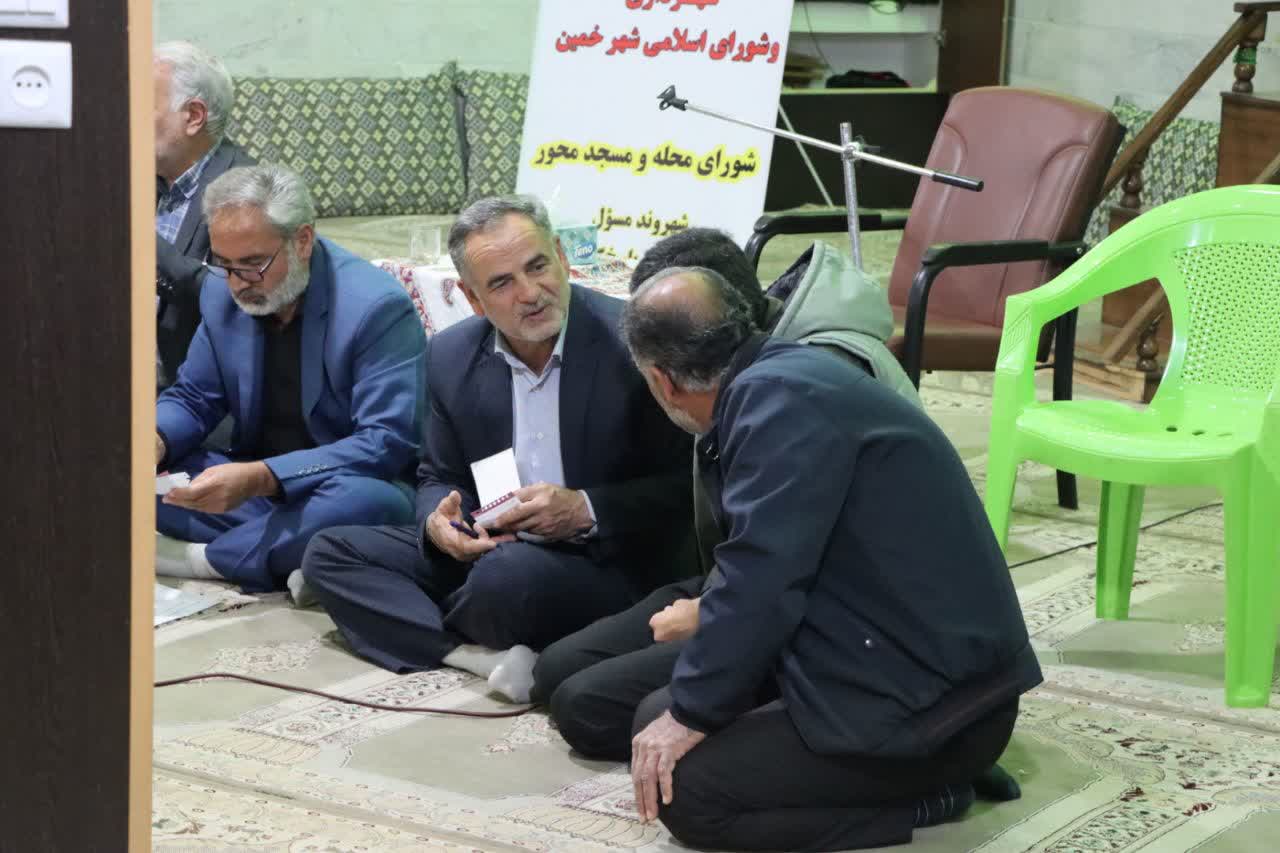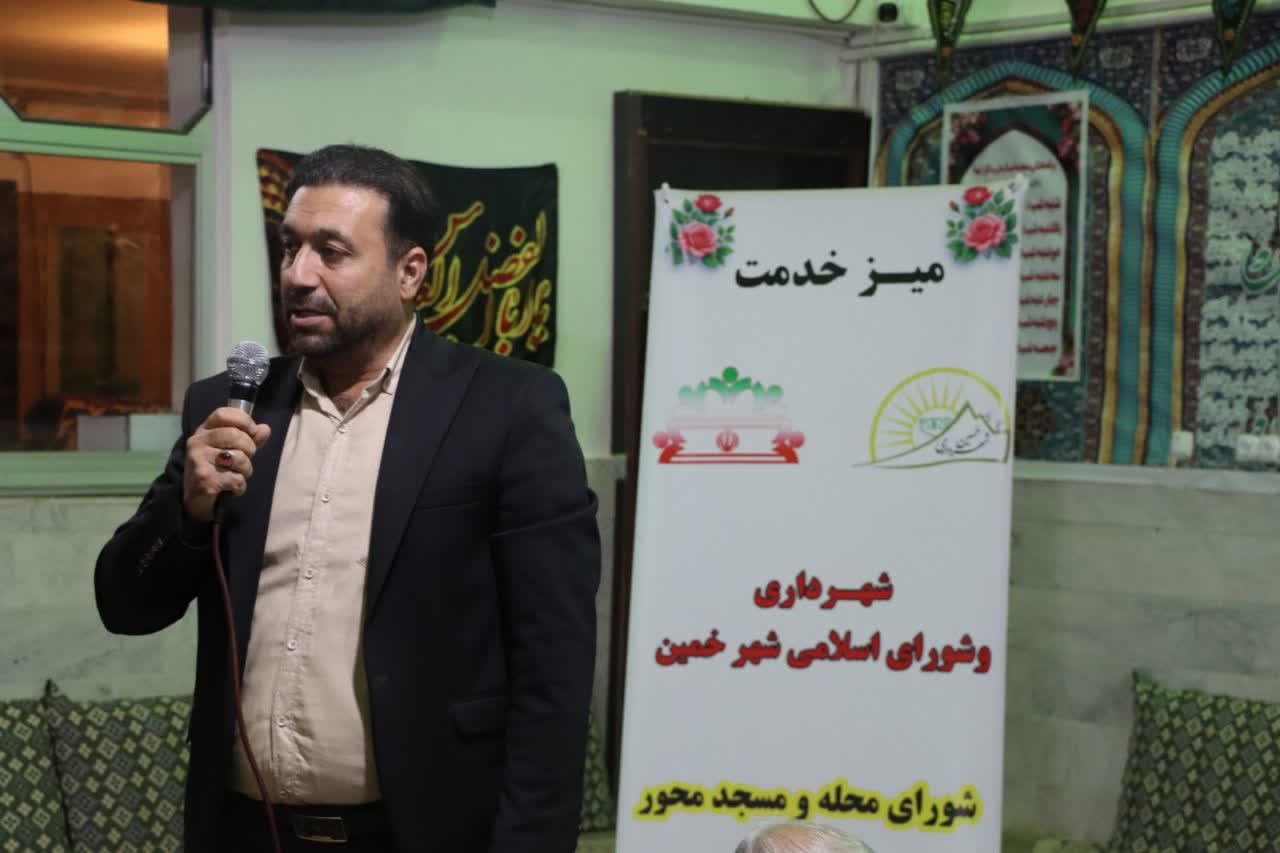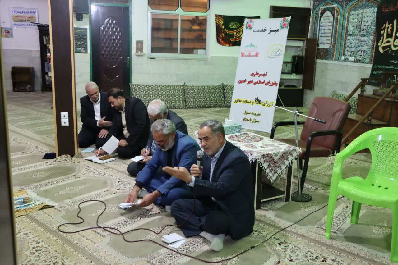 به گزارش گروه چندرسانهای پایگاه خبری تحلیلی «امروز خمین» شامگاه چهارشنبه پس از اقامه نماز مغرب و عشاء، مهندس احمدی شهردار خمین، دکتر نادری رئیس شورای اسلامی شهر و اعضای شورا آقایان حاج علی بیات، دکتر فرقدانی، حاج امید طاهری و سرکار خانم هاشمی در قالب برگزاری یازدهمین میز خدمت با محوریت شورای محله و مسجد محور، در حسینیه گلزار شهدای خیابان قیام واقع در محله عباسآباد حضور یافتند.